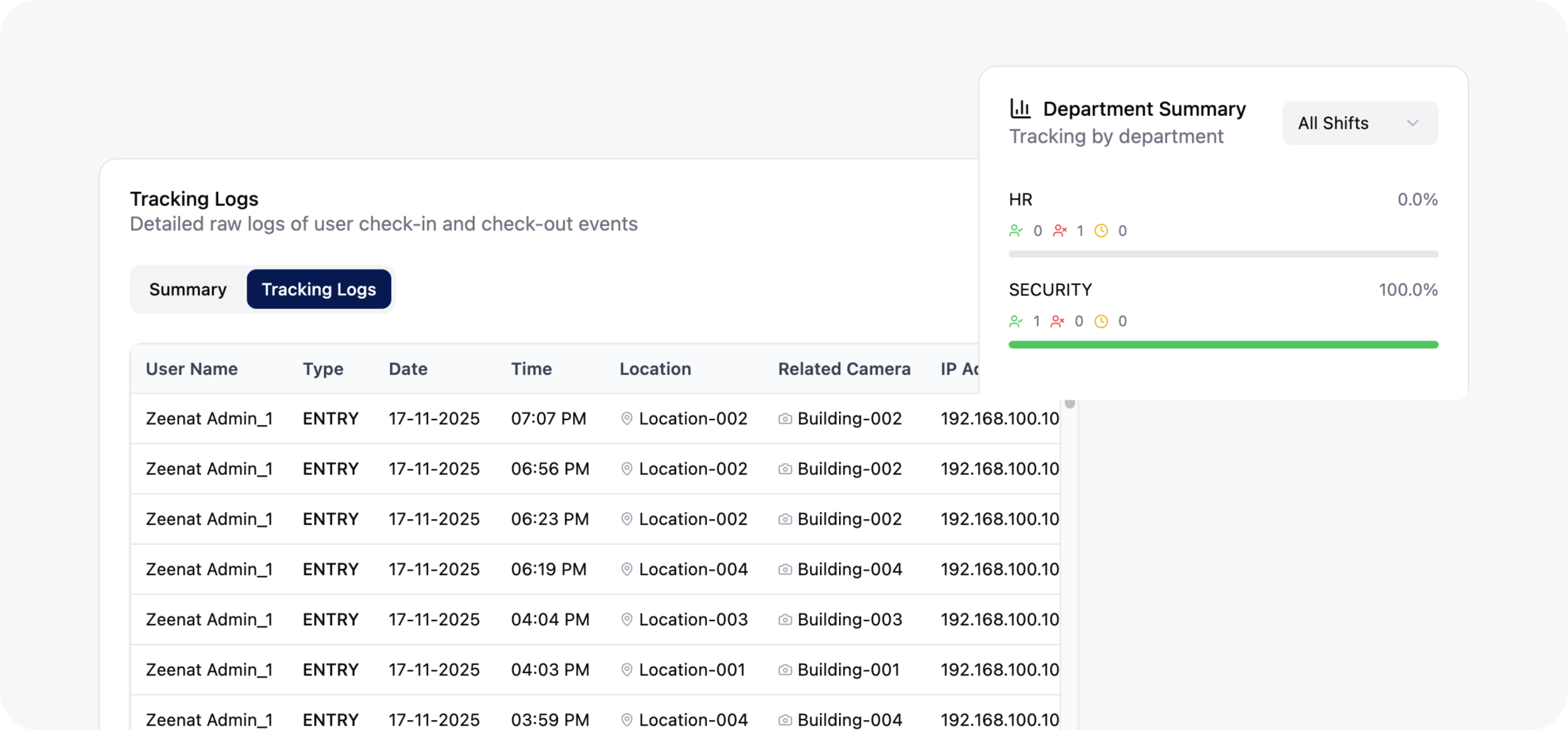 Automatically track staff check-ins and movement using AI, ensuring accurate records and improved workforce visibility.